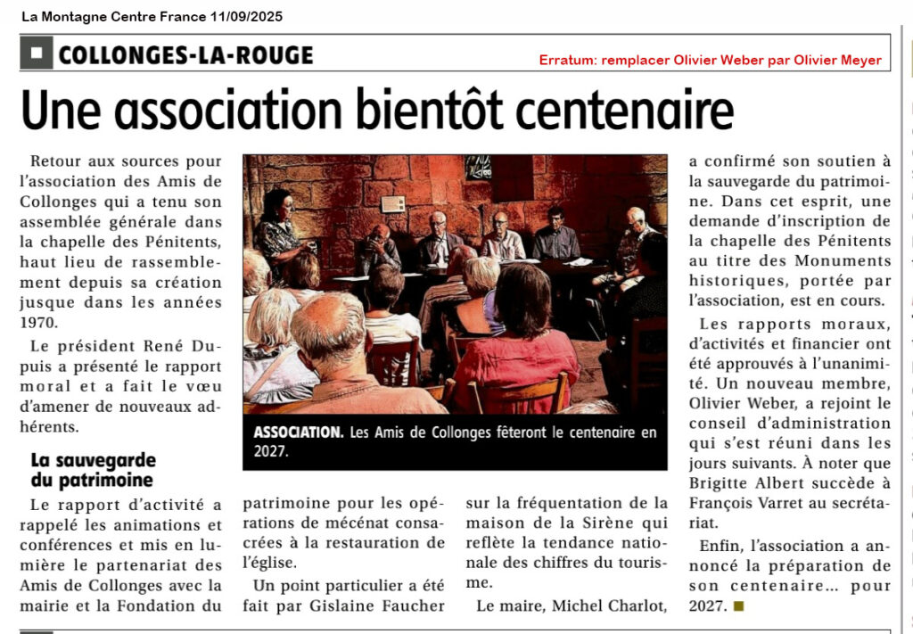 Depuis plus de 90 ans, les Amis de Collonges, jouent un rôle prépondérant pour l’accueil et l’animation culturels de cette petite cité. Notre association perpétue ainsi l’œuvre accomplie par les fondateurs en mettant en valeur le patrimoine artistique du village et en soutenant les particuliers dans la rénovation. Deux bâtiments emblématiques ont été restaurés par les Amis de Collonges :